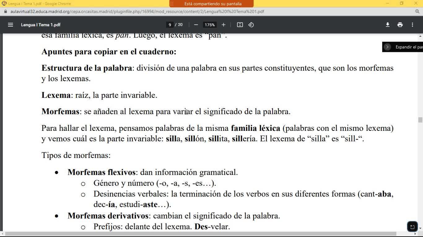 la quinta clase, si no recuerdo mal. Y vamos a continuar con morcemas y lexemas, que es