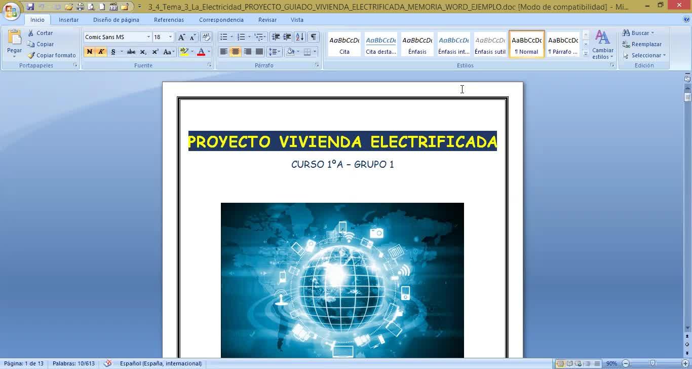 1º ESO / Tema 3 -> Proyecto de electricidad - Explicación de la memoria de Word - Contenido educativo