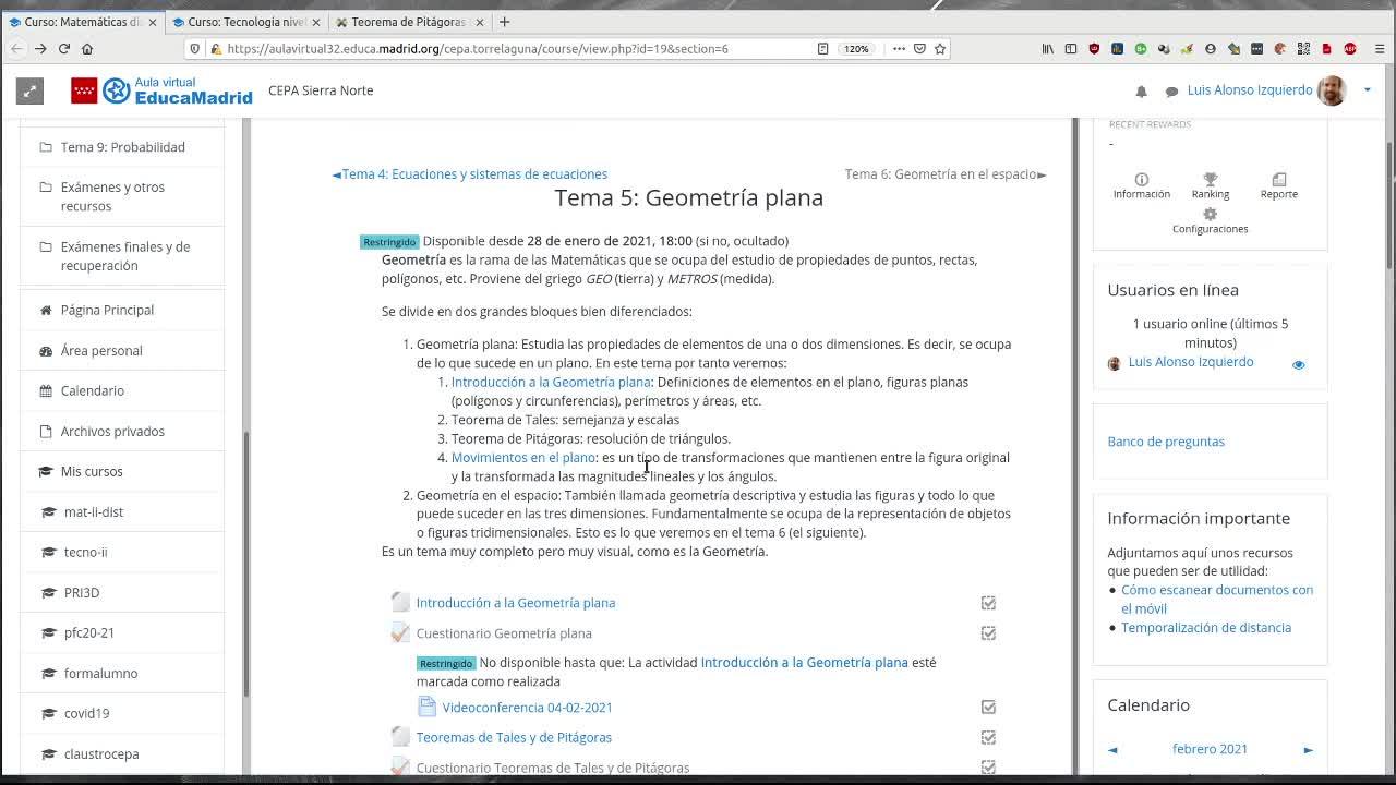 Pues, por ejemplo, dentro del tema del teorema de Tales y teorema de Pitágoras,