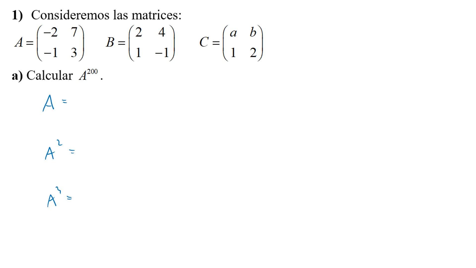 Bueno, lo que hay que hacer es ir calculando a, a cuadrado, a cubo, etcétera, para obtener un patrón.