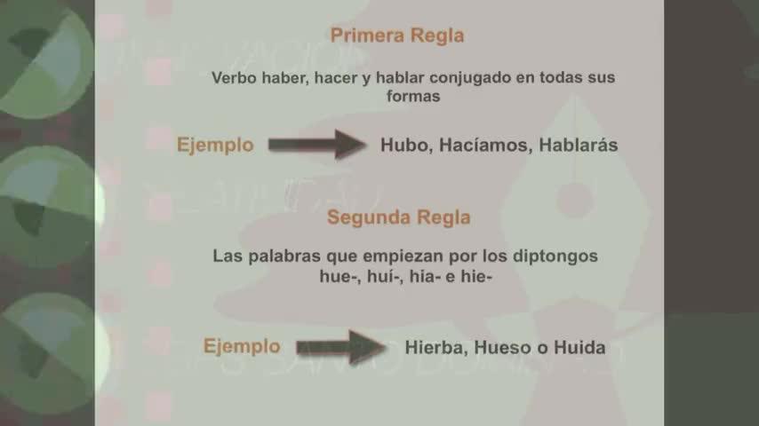 Segunda regla, también se escriben con H las palabras que empiezan por los diptongos