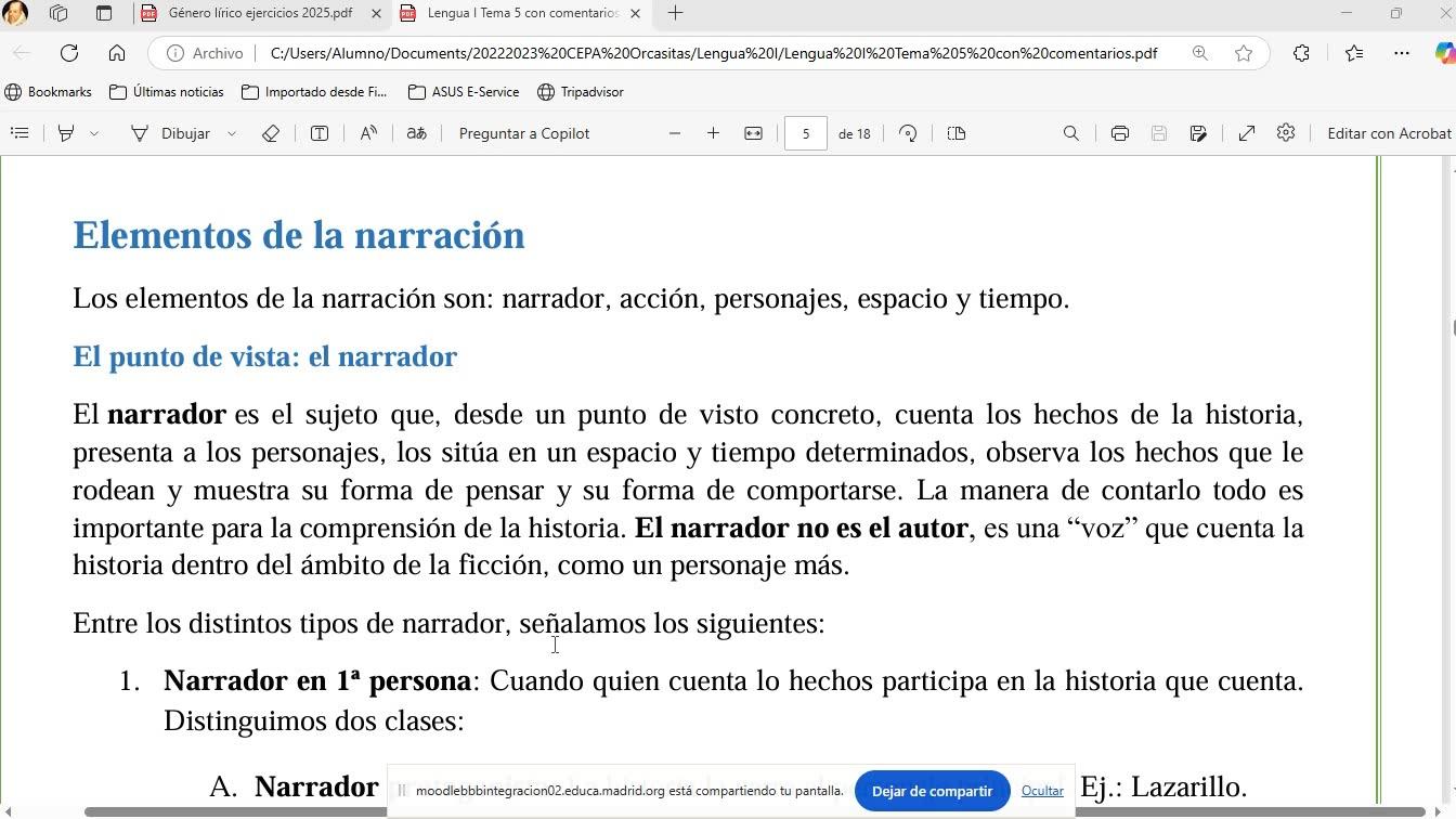Pero bueno, el orden da igual. ¿De acuerdo? Entonces, ¿el narrador? ¿Qué es el narrador?