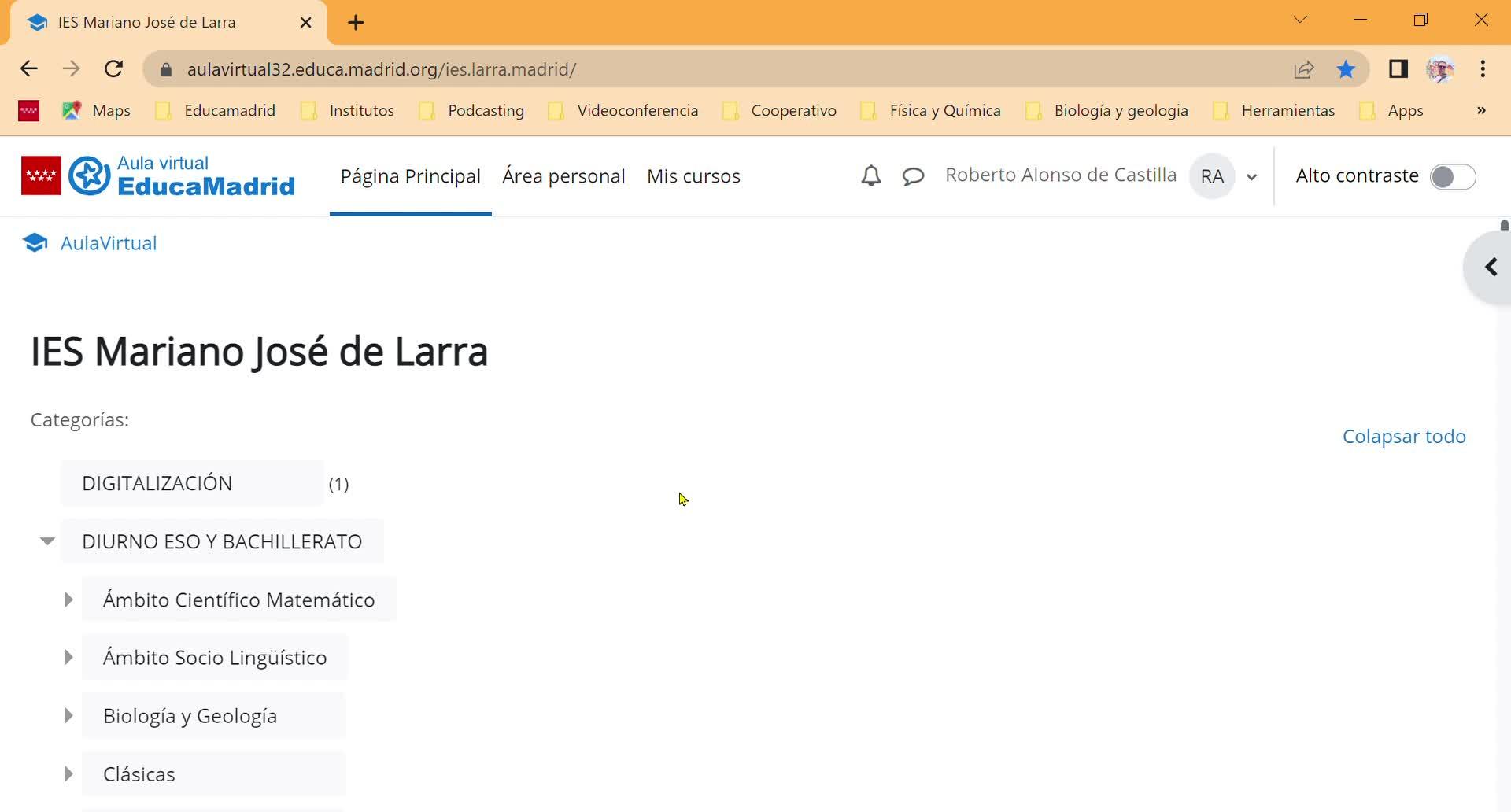y pincharíamos en nuestro nombre. En este caso aparece nombre largo que a mí no me interesa, entonces en más pincharía gestionar cursos y me iría abajo del todo.