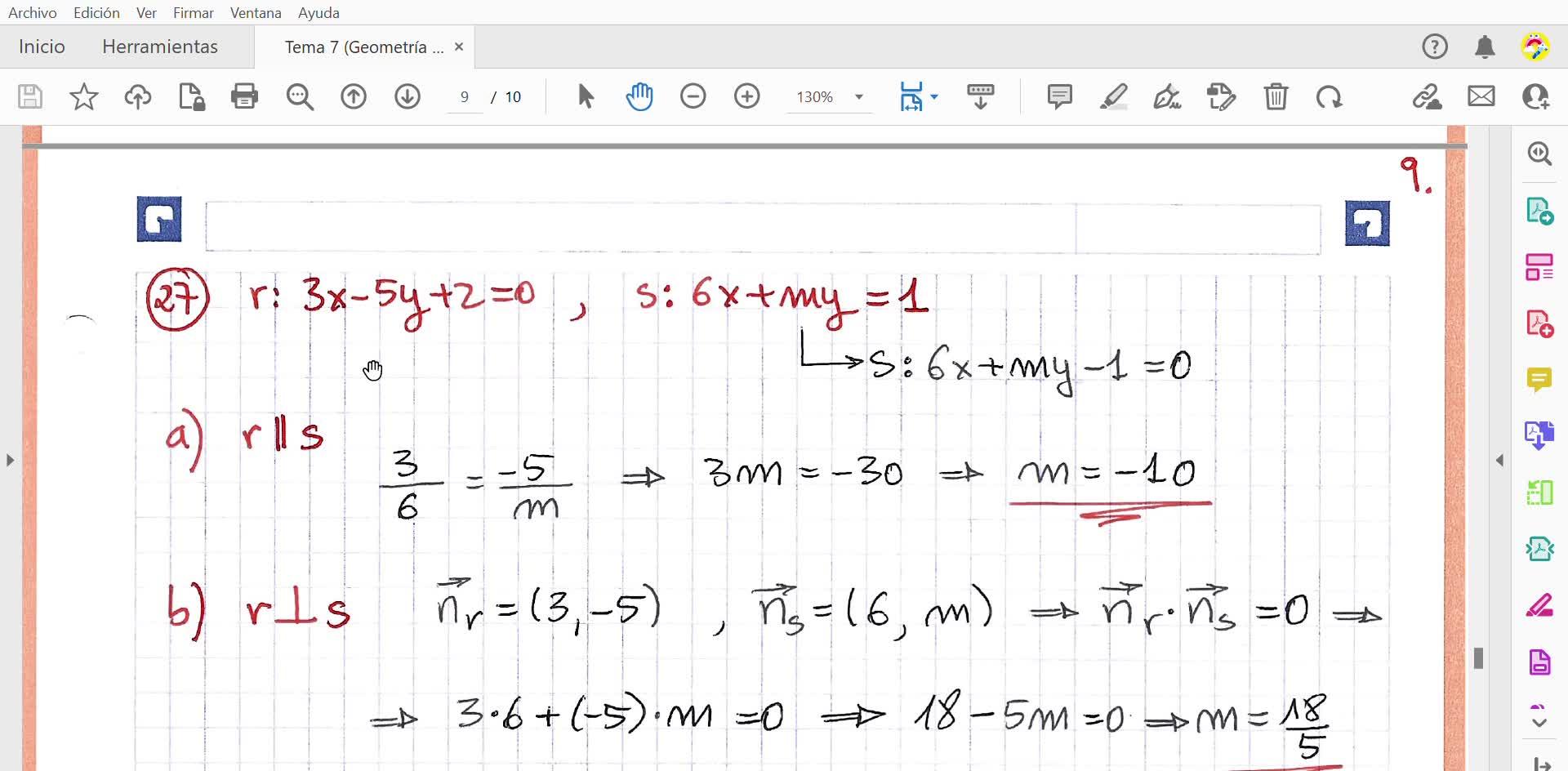 Este es el 27 que te da las ecuaciones de dos rectas, una de ellas dependiendo de un parámetro que aquí lo ha llamado m
