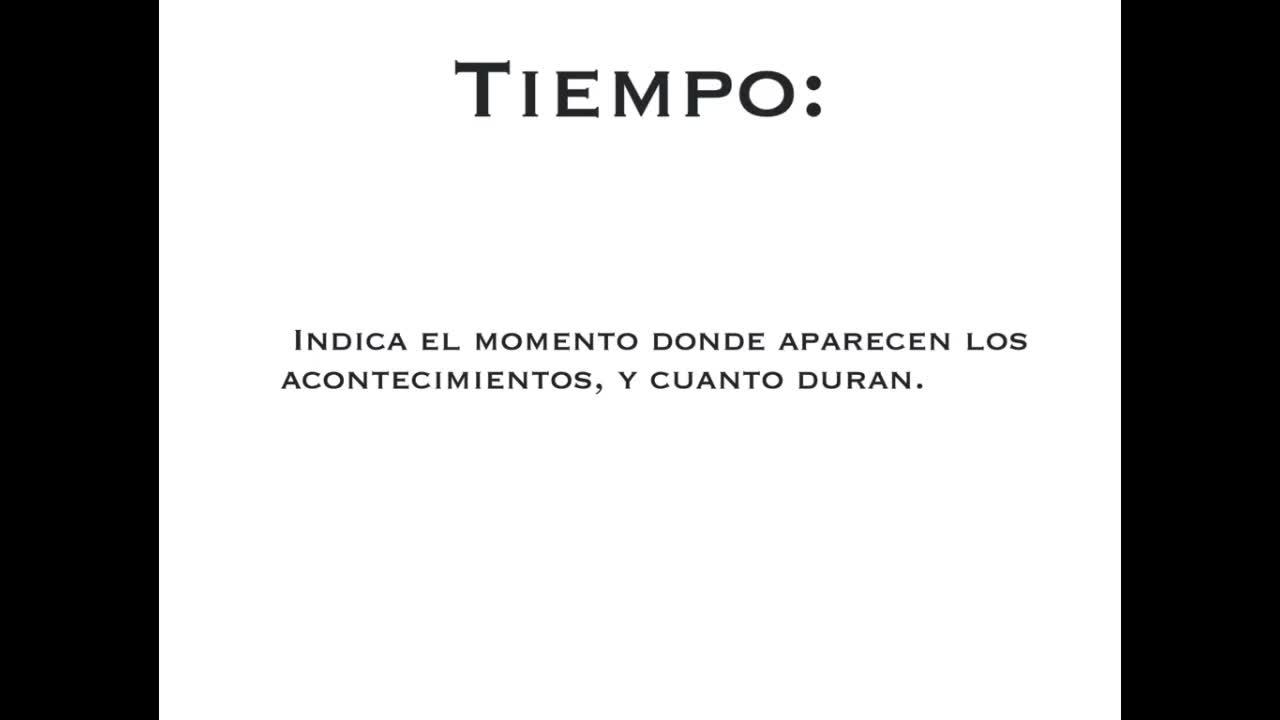 Tiempo, indica el momento donde aparecen los acontecimientos y cuando duran