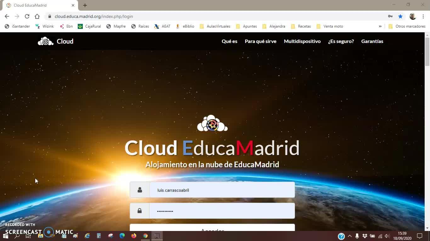 Vamos a aprender a utilizar el cloud de EducaMadrid como servicio de alojamiento en la nube que nos ofrecen a partir de nuestra cuenta de usuarios que todos tenemos por ser alumnos del centro.