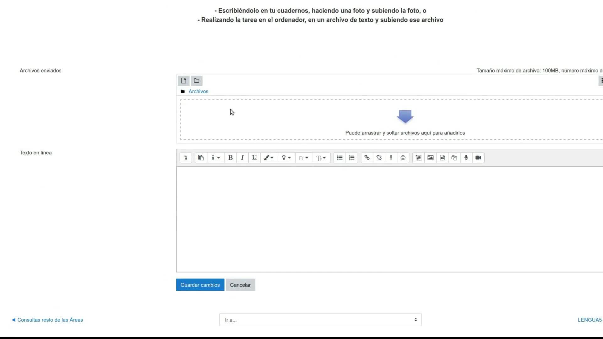 O realizando la tarea en el ordenador, en un archivo de texto y subiendo ese archivo. Cualquiera de las dos.