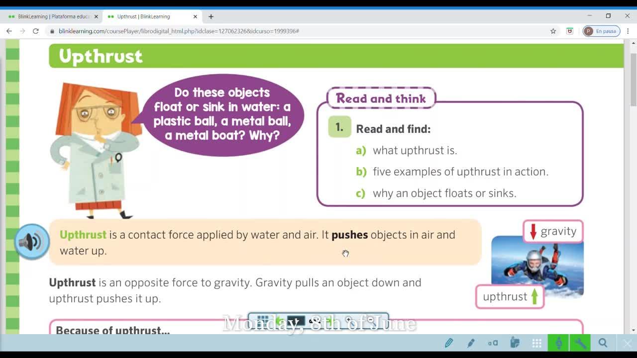 upthrust is a contact force applied by water and air, okay, and it pushes up the objects,