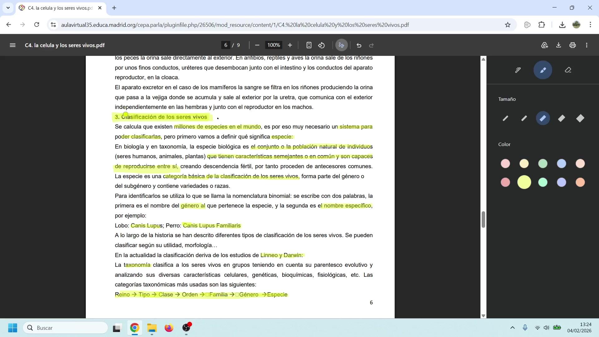 Muy bien, la especie es una categoría básica de la clasificación de los seres vivos, ¿vale?