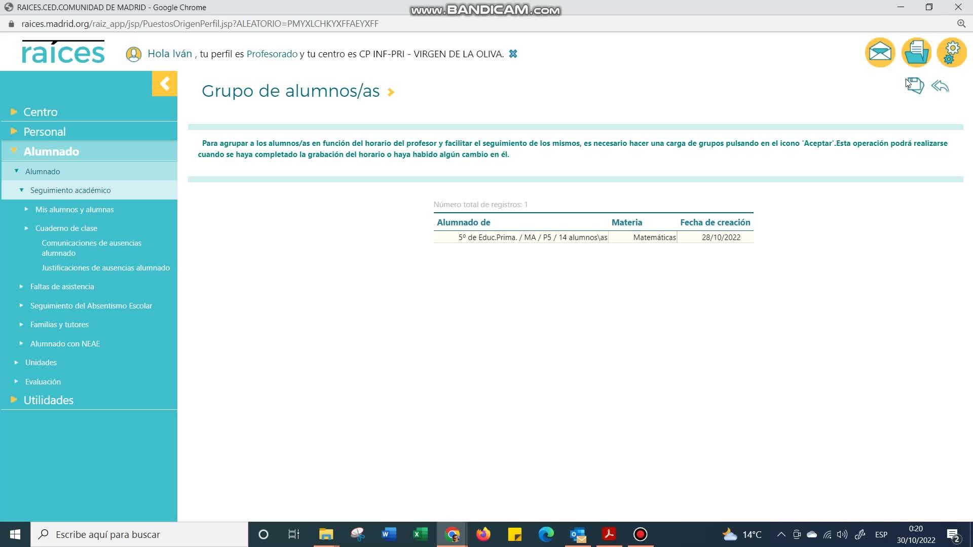 y alumnas y a este submenú, grupos de alumnos, alumnas. Es fundamental hacer una primera