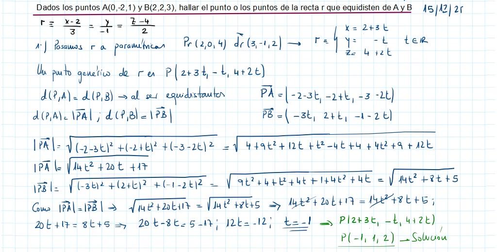 He dado dos puntos, hallar el punto, los puntos de la recta que equidisten de A y de R, ¿vale?