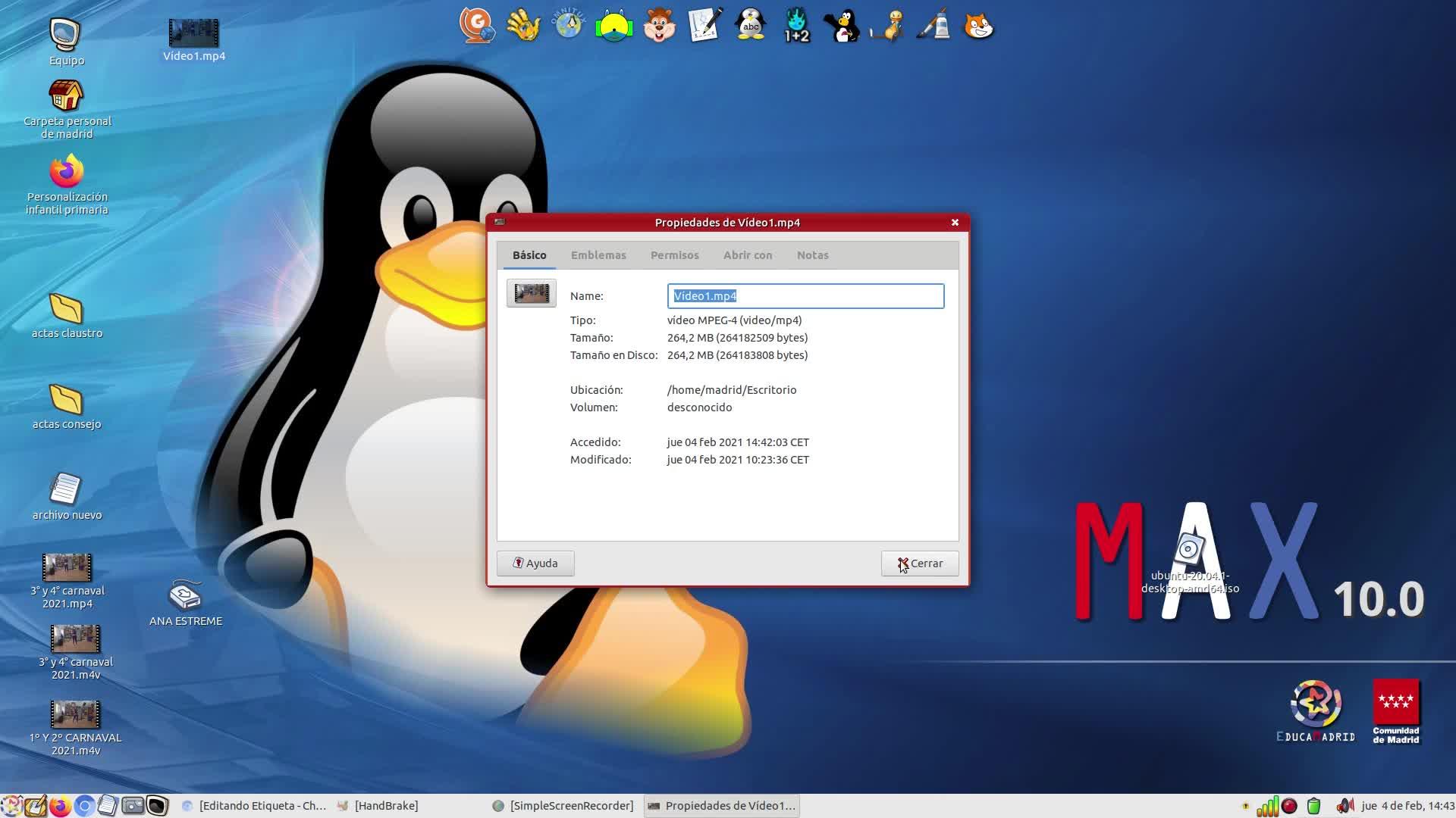 Explicación de uso del programa Handbrake en el sistema operativo MAX para reducir vídeos que se puedan alojar en la web.