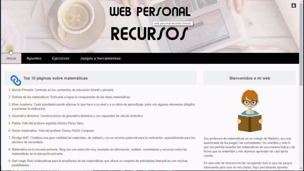 Vemos que esta web tiene cuatro páginas de primer nivel, que son Inicio, Apuntes, Ejercicios, Juegos y Herramientas.