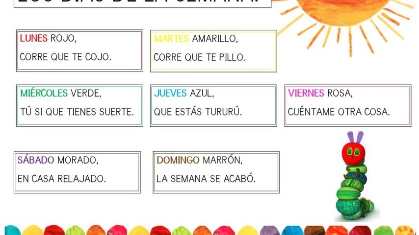 Lunes rojo, corre que te cojo, martes amarillo, corre que te pillo, miércoles verde, tú sí que tienes suerte, jueves azul, que estás tururú.