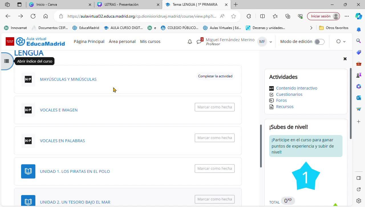 evaluables, las tareas y los controles. Esta es una de ellas. Vamos a ver la anterior,