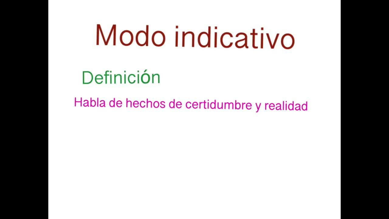 Modo indicativo. El modo indicativo habla de hechos de certidumbre y realidad.
