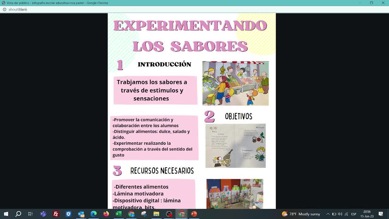 Primeramente empezamos con la introducción, donde trabajamos los sabores a través de estímulos y sensaciones.