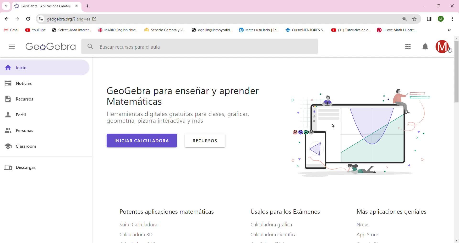 Vale, abrimos el GeoGebra y yo ya estoy logueada,
