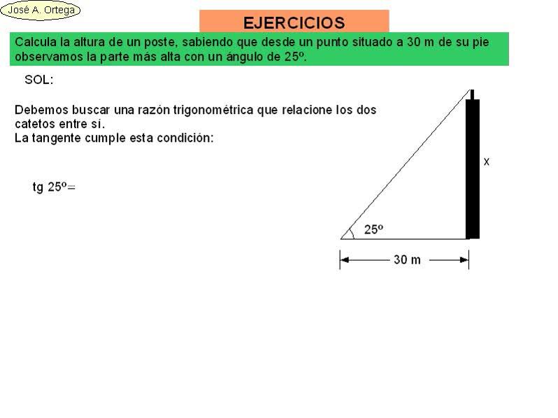 El ejercicio nos dice, calcula la altura de un poste sabiendo que desde un punto situado