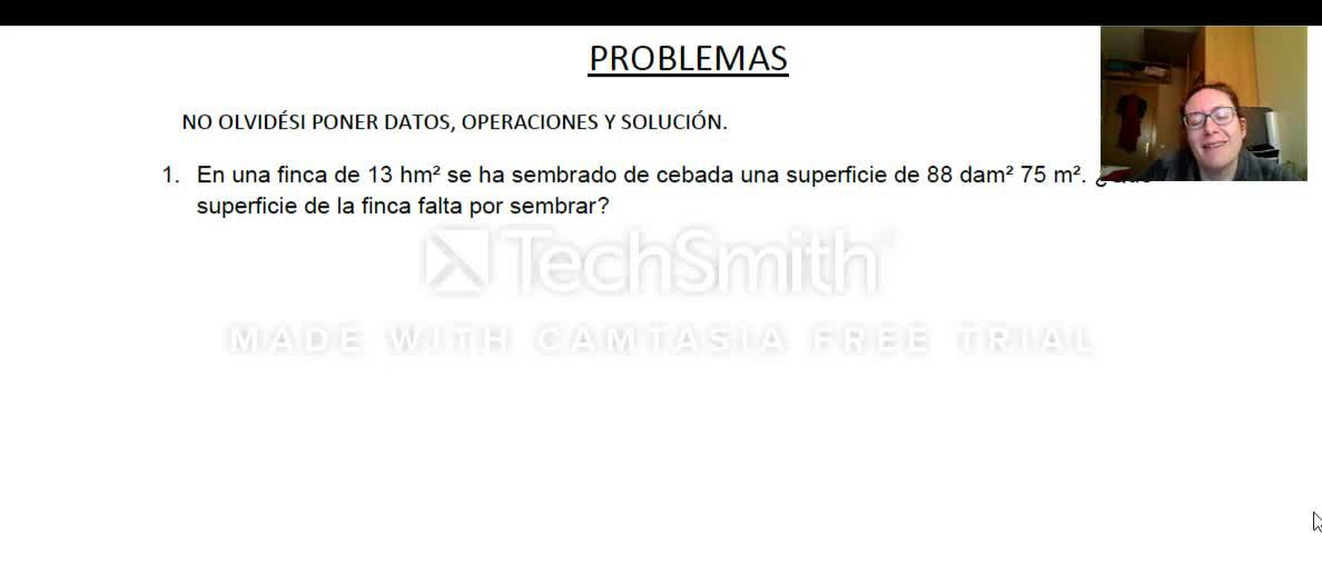 Entonces, los datos de este problema dicen que en una finca de 3 hectómetros cuadrados se ha sembrado de cebada una superficie de 88 decámetros y 72 metros cuadrados, ¿vale? Esto es una expresión compleja, acordaros, y esta es una expresión simple, ¿vale? Incompleja.
