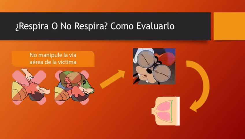 Solamente vamos a observar si el tórax se eleva y vuelve a descender, y en ningún momento vamos a manipular la vía aérea de la víctima.