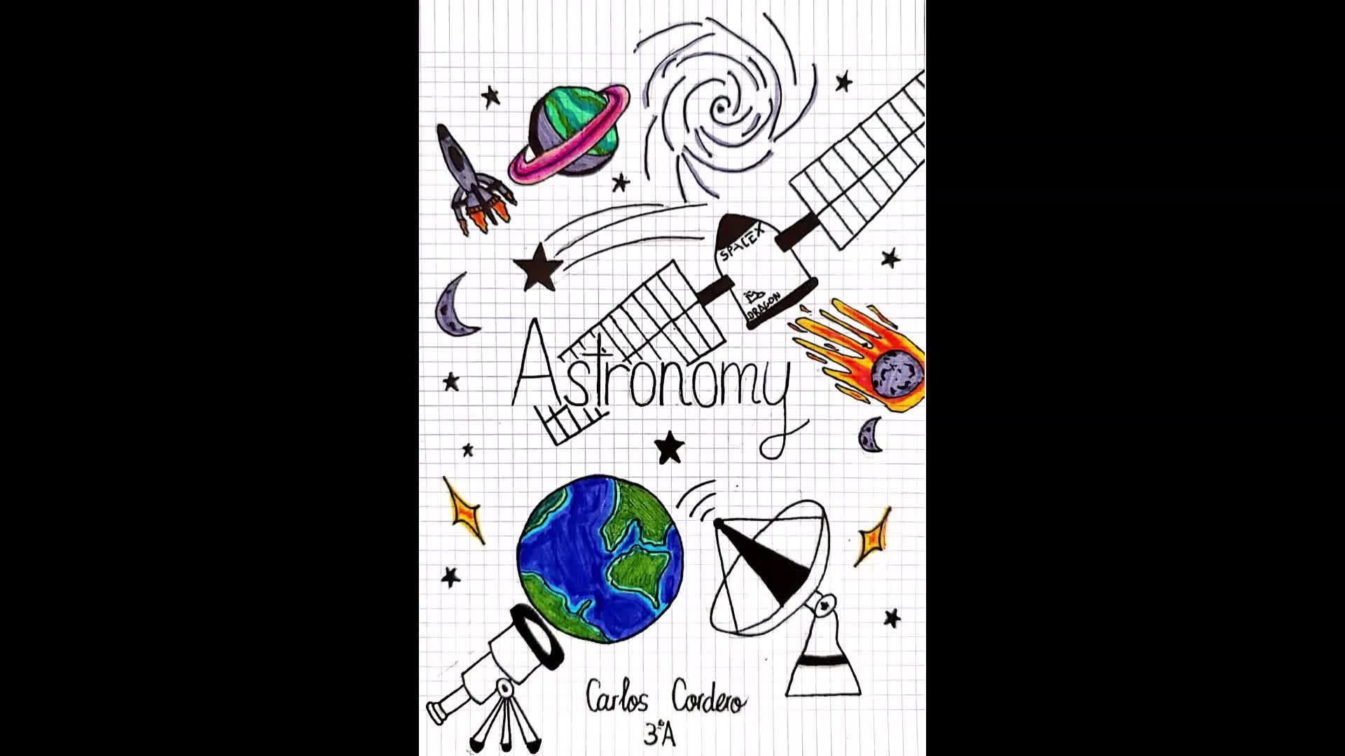 Algunas de las portadas que los alumnos de Taller de Astronomía, de 3º de ESO han presentado para sus cuadernos.