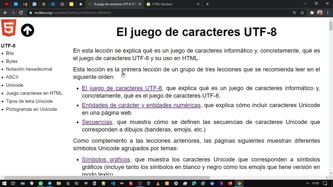 Hemos hecho referencia a UTF-8, vamos a ir a ella,