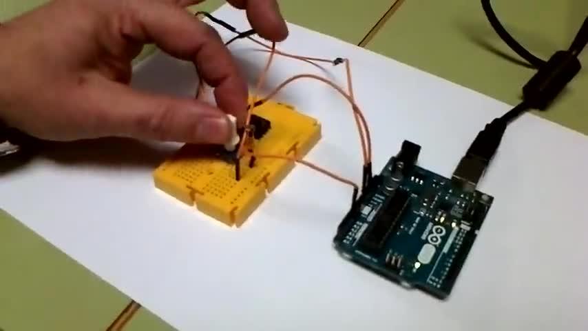 A ver, movemos el potenciómetro y en la pantalla se da la oscilación, ahí se calibra y ahí ya podemos detectar luz con ese lumbrón, y ahora detectamos la luz con la llave.