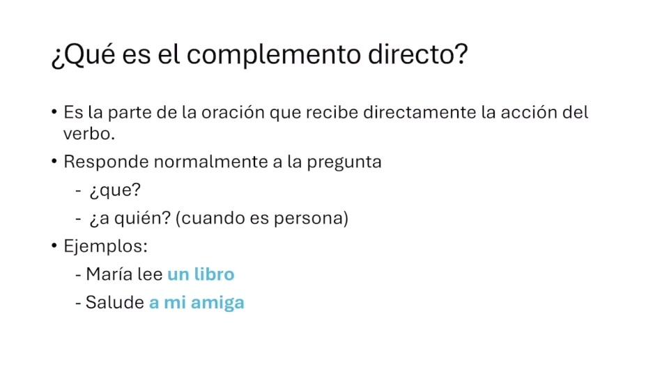 Primero, vamos a aclarar lo que es el complemento directo.