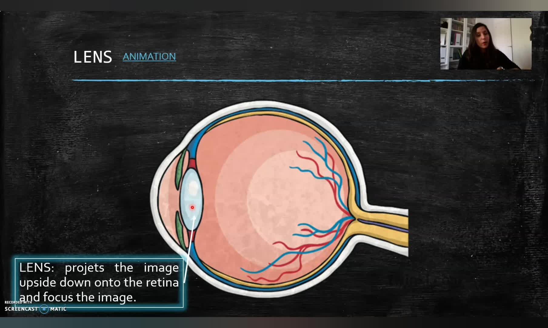 In this video, we see here the lens and the light passes through the lens and the image