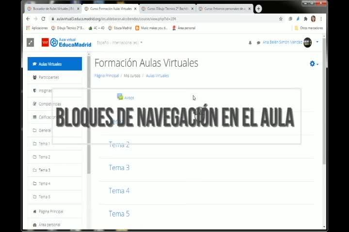 Aula Virtual III - Bloques de navegación en el aula - Contenido educativo
