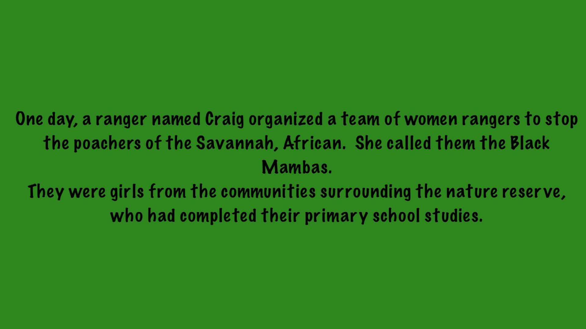 One day, a ranger named Craig organized a team of women rangers to stop the poachers of the savannah, African.