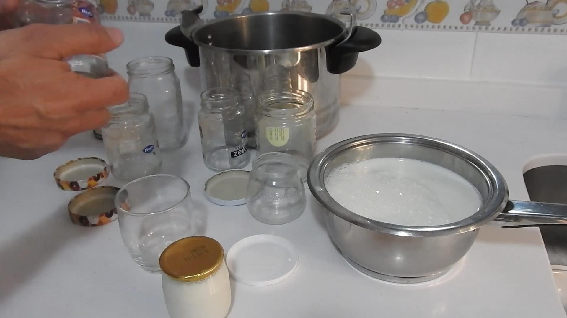 De saber que ya la leche está entre 40 y 45 grados, así que cojo el yogur, puede ser un yogur de los que compramos en el supermercado, no tiene por qué estar en un tarro de cristal, puede estar en un tarro de plástico, pero bueno, es para evitar los plásticos.