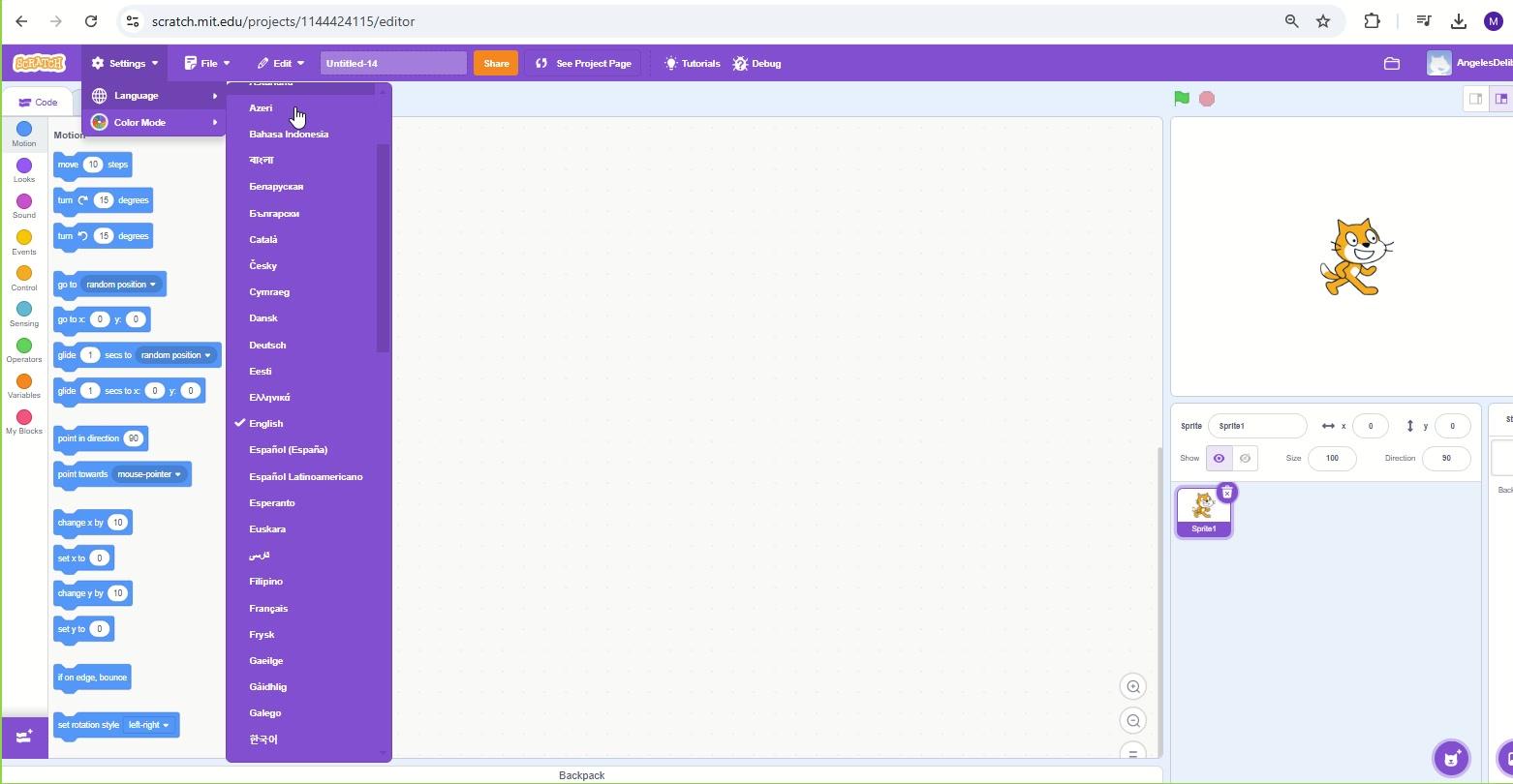 Si queremos cambiarlo a español, le doy a la configuración en settings y en lenguaje le puedo elegir en español.