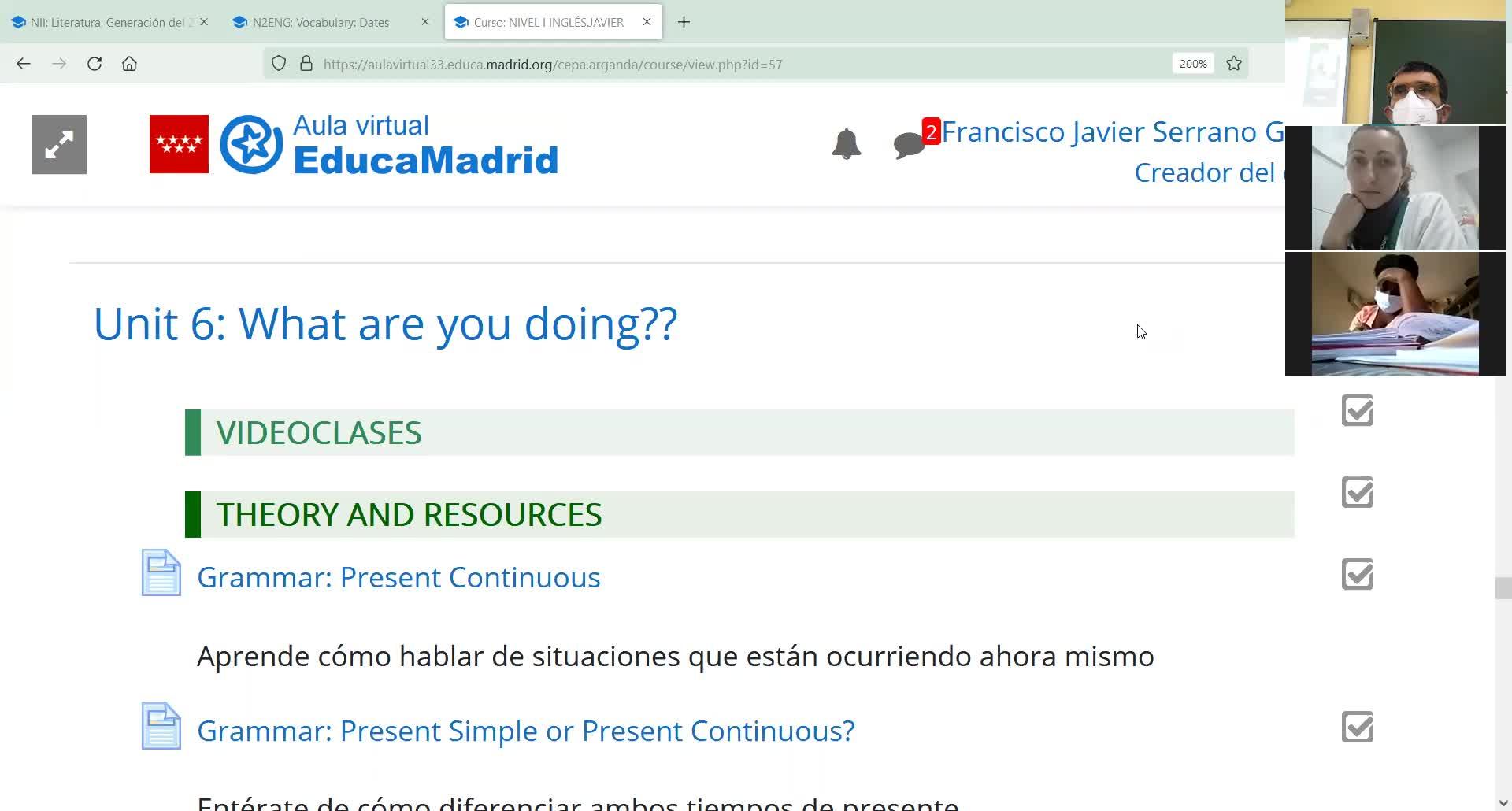 Pues entonces, ahí hay que buscar la que ponga Grammar Present Continuous 1, y ahí estará, ¿vale?