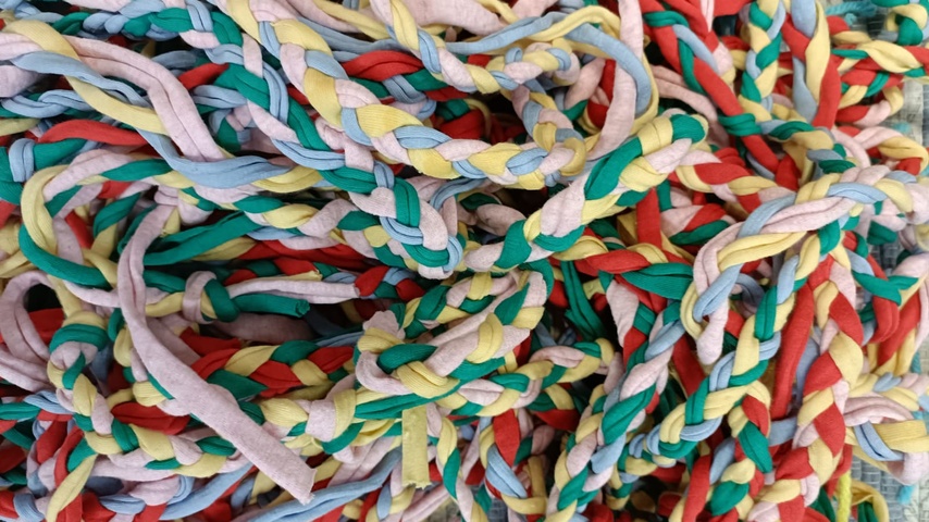 Hacemos un nudo con las tres tiras.