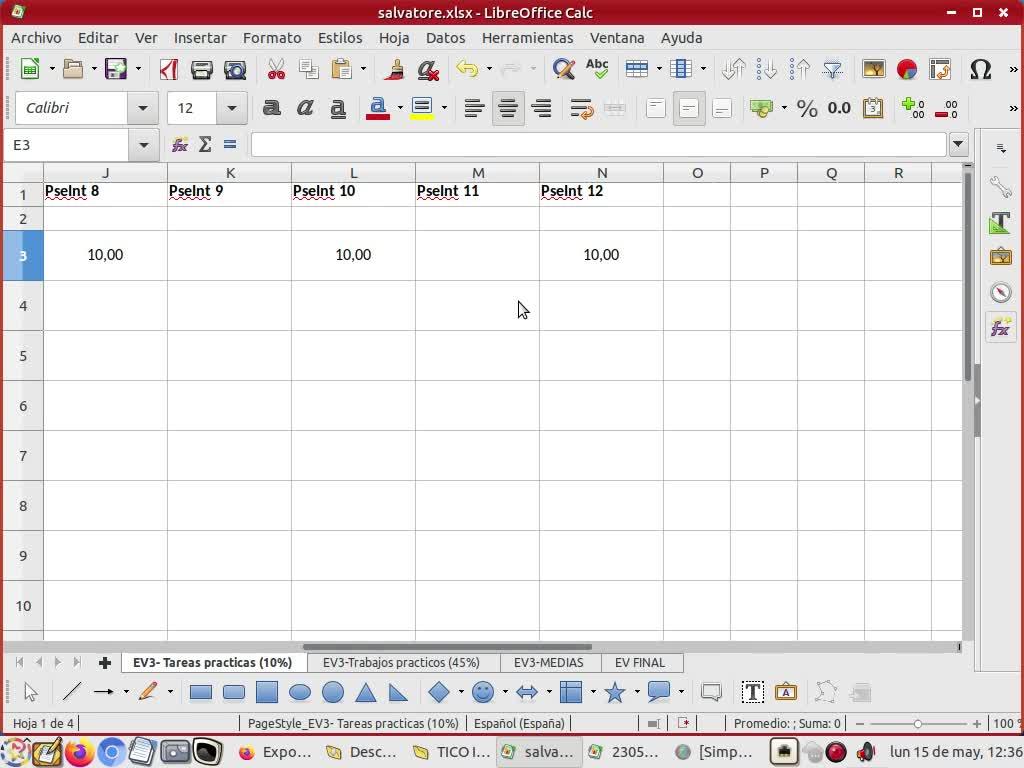 Bueno, en cuanto lo abrís os encontráis diferentes pestañas, la primera pestaña son las tareas prácticas que valen un 10% de la nota por defecto de la tercera evaluación, de manera que aparecerán los 13 archivos de SAINT con los que hemos estado trabajando, la calificación que tiene cada uno de ellos.