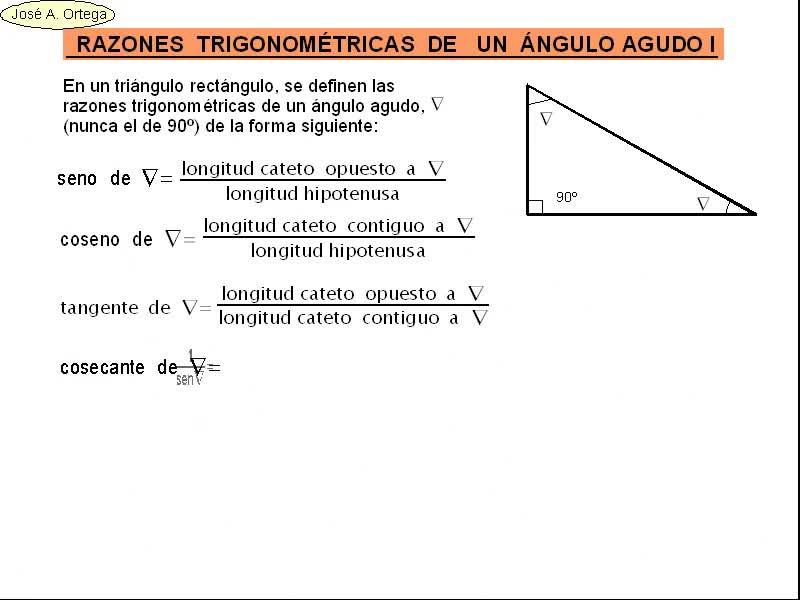 - Definición de razones trigonométricas de un ángulo agudo.