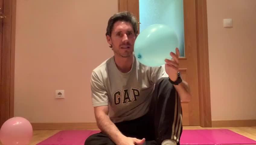 Con un globo me tumbo boca arriba y le doy uno, dos, tres, cuatro, cinco, seis, siete, ocho, nueve, diez, once, doce, trece, catorce, quince,