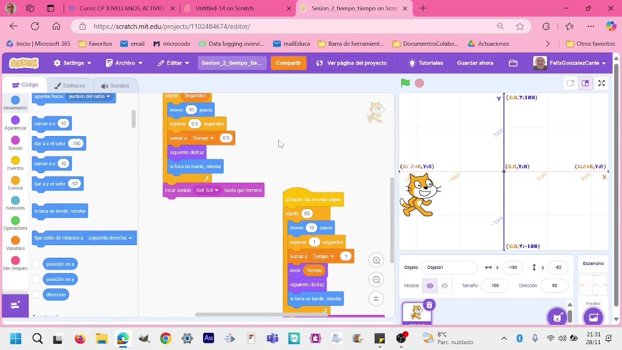en la segunda sesión del curso de Scratch que estamos dando en el Jovellano, ¿no?