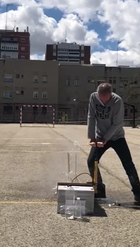 - Lanzamiento cohete,cámara lenta, proyecto, agua y aire comprimido, tiro parabólico, centro de gravedad, centro de presión, acción-reacción.