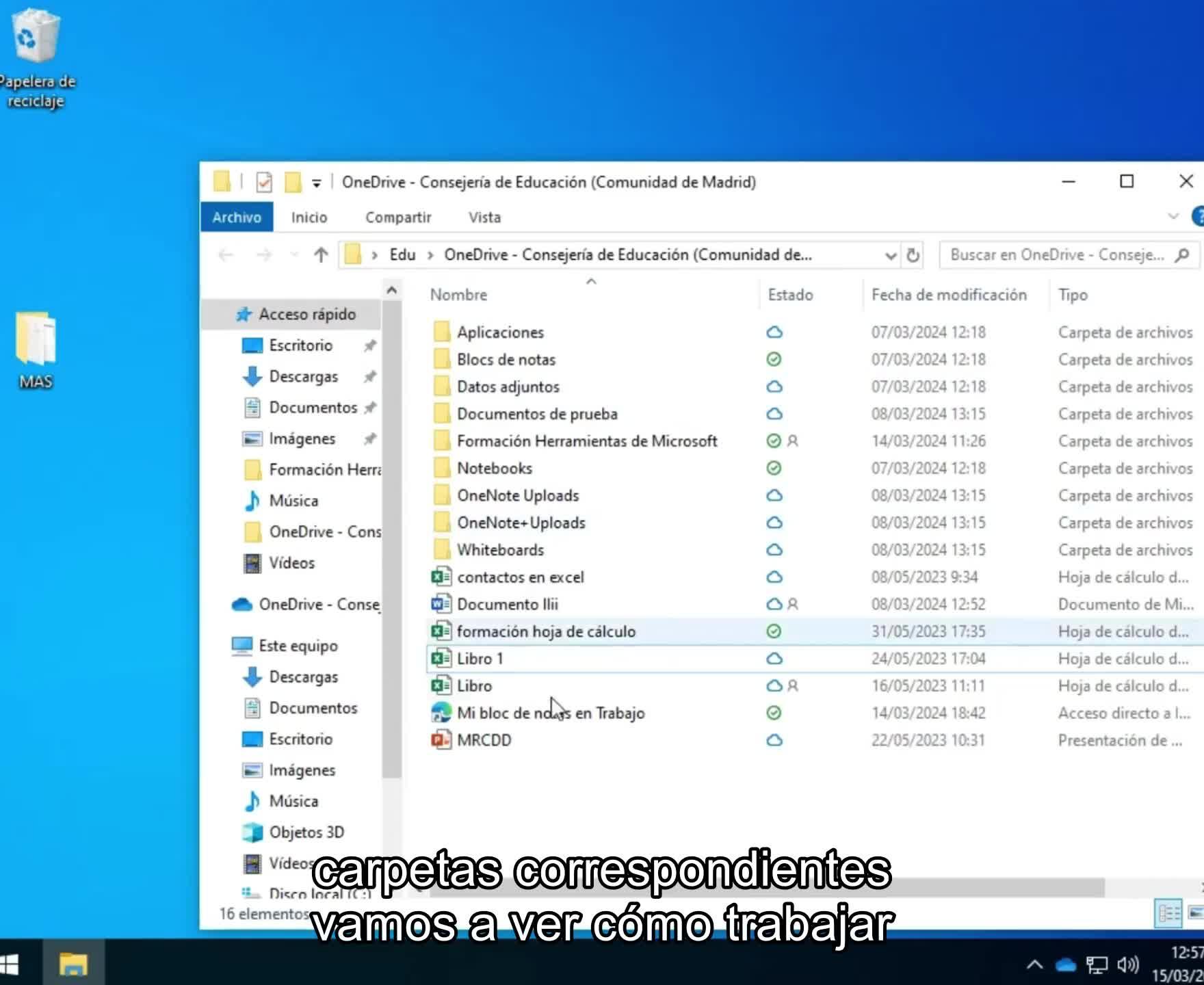 Bien, ya tengo aquí mi carpeta de OneDrive con todos los archivos y carpetas correspondientes.