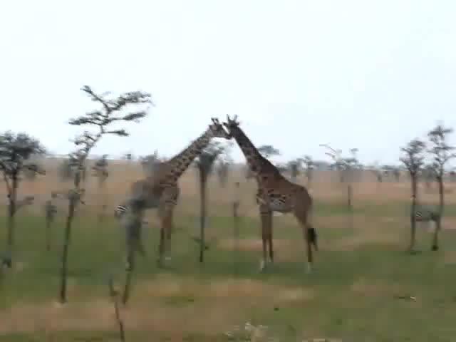 Las jirafas poseen una lengua azul muy oscura que es prensil, de la que se valen para coger cuidadosamente las hojas de las acacias espinosas que son su alimento favorito.