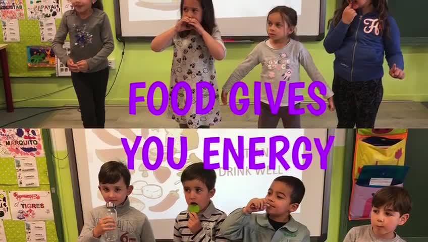 It keeps you healthy. Food makes you grow. Food gives you energy to go, go, go. Go, the healthy song.