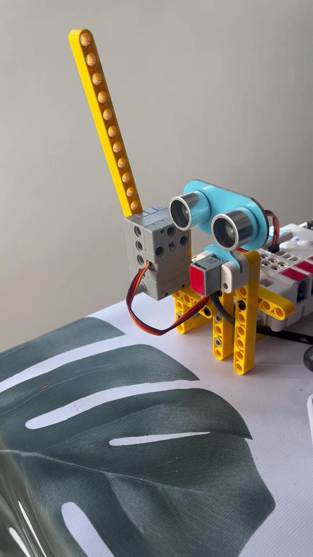 Tenemos un servo y un sensor de distancia.