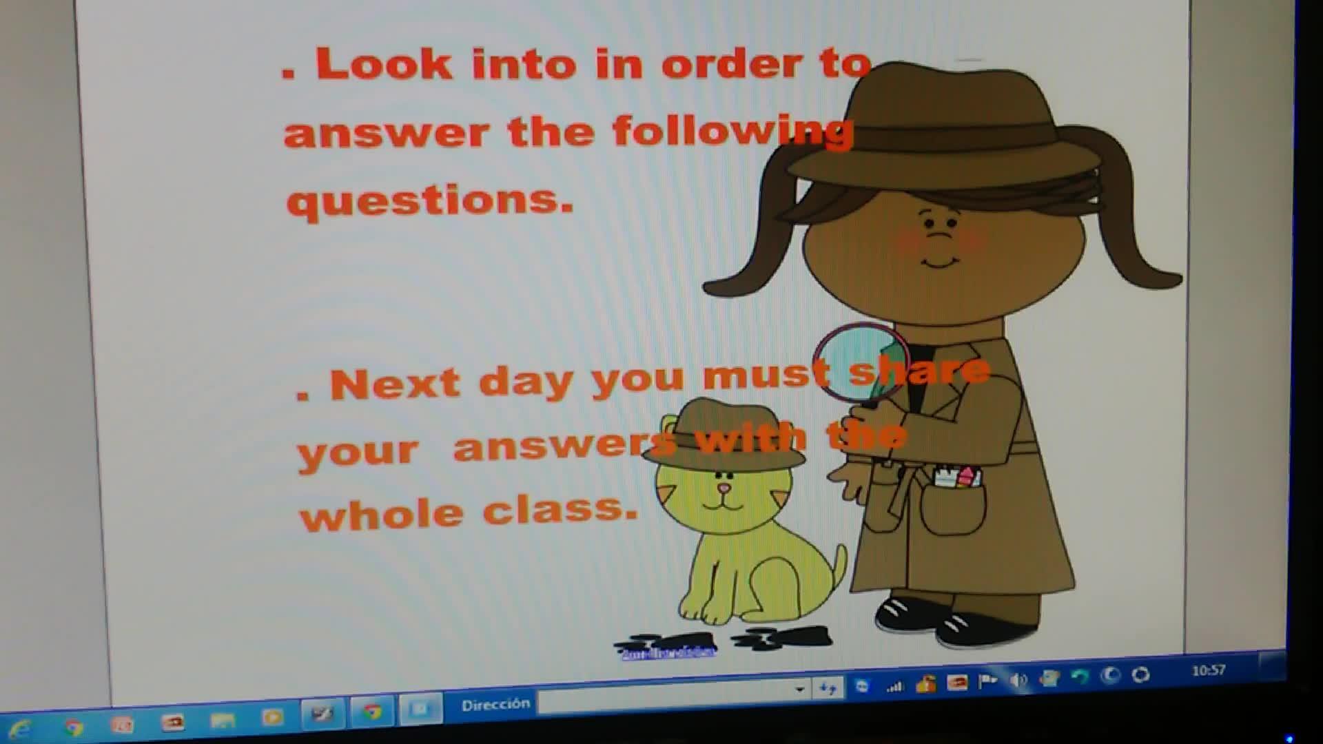 Next day, you must share your answers with the whole class.