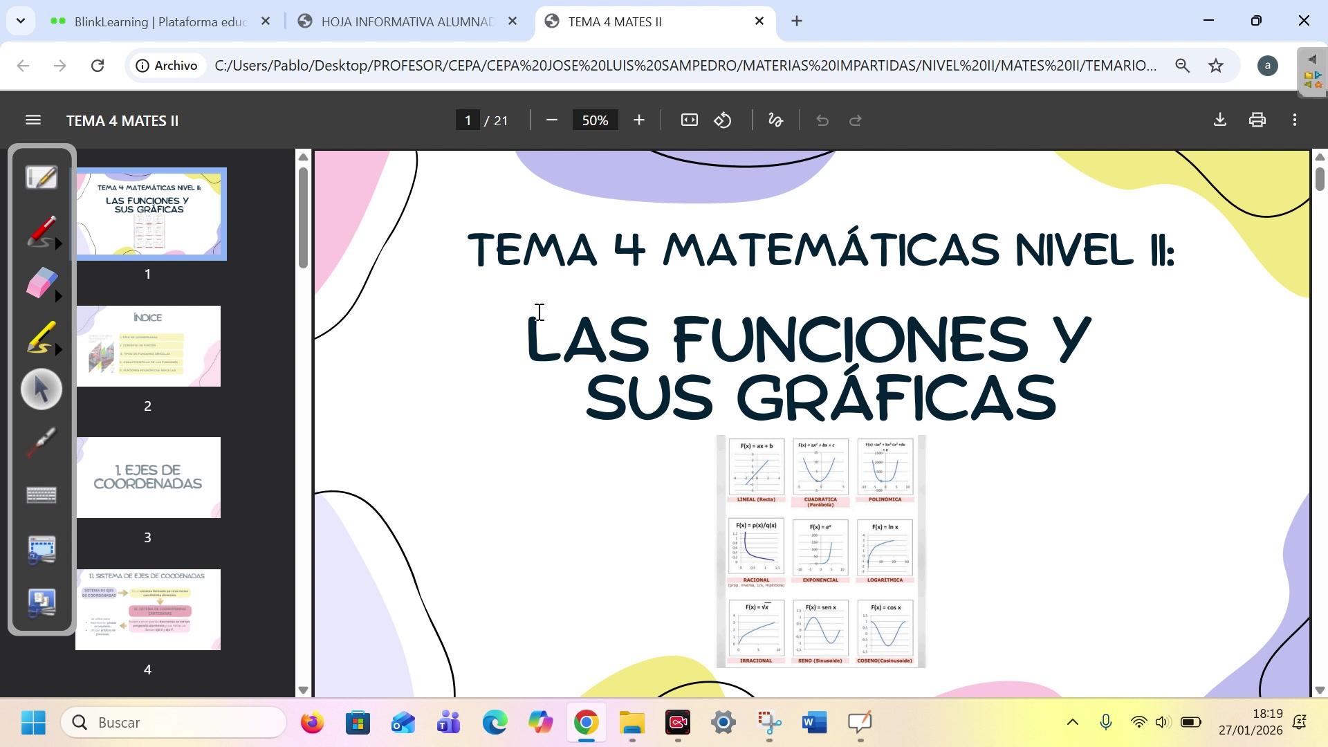 Bueno, funciones problemáticas sencillas también, ¿vale? Más o menos. Bueno, pues sería el tema, es un poco más corto que el anterior, ya que los dos últimos apartados se han quitado debido a que eran cosas que simplemente, pues, como poner gráficas en la vida cotidiana.