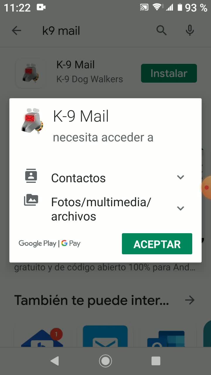 Para ello nos tenemos que ir al Play Store y buscar la aplicación K9 Mail.