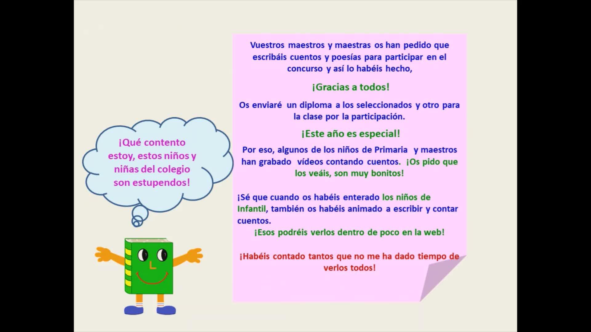 Video presentación del certamen literario de los niños por el Día del Libro.