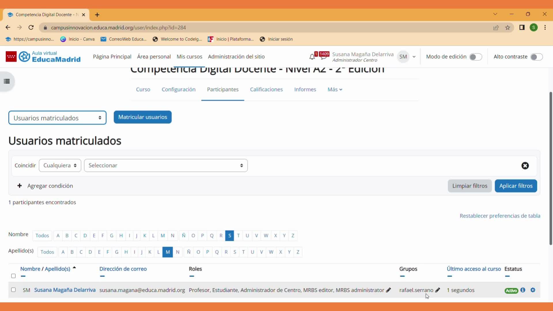 y me aparece en la columna de grupos Rafael.Serrano.